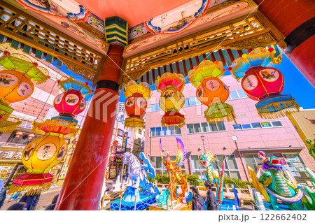日本の横浜都市景観 横浜中華街を望む・2019春節燈花
