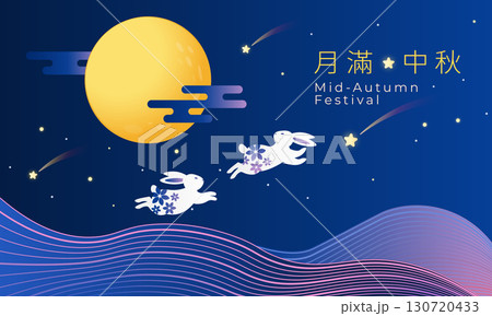 亞洲的節日:中秋節,美麗的仙女與兔寶寶與滿月的海報