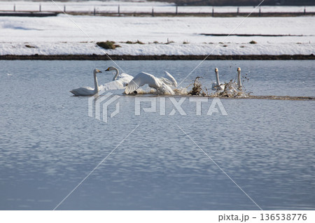 真冬に北海道や北日本の海岸や湖で出会える真っ白な美しい野鳥オオハクチョウ