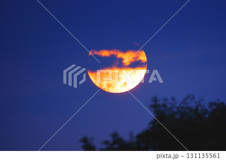 トワイライト 海の水平線から昇る 満月 実写