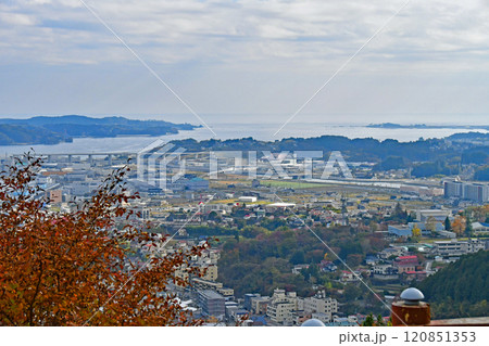 宮城県 気仙沼市 秋 安波山から見晴らす気仙沼湾横断橋と街並み