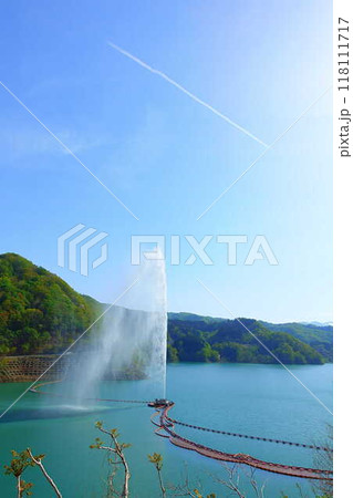 噴射高は112mで日本一 月山湖大噴水