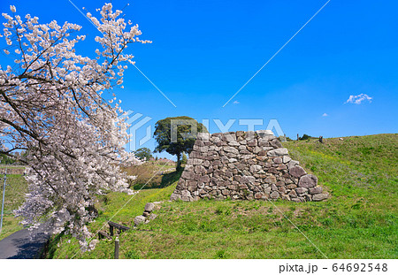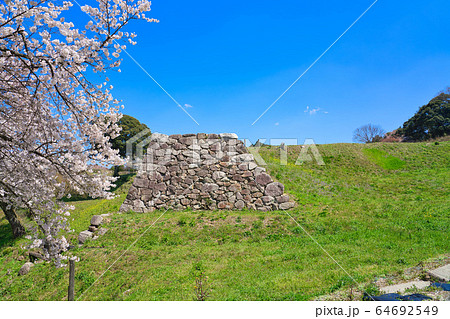 〈島根県〉月山富田城跡と桜 山中御殿跡の石垣