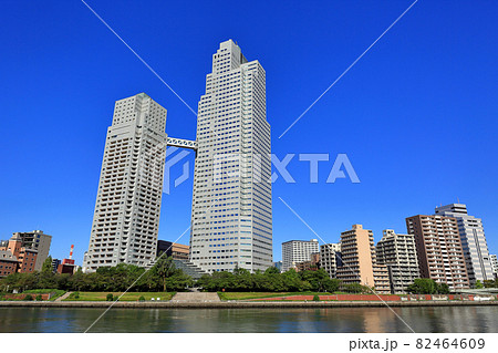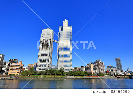 東京 中央区の都市風景 隅田川と聖路加ガーデンタワー