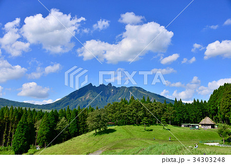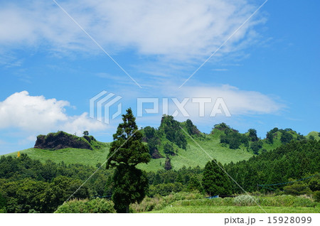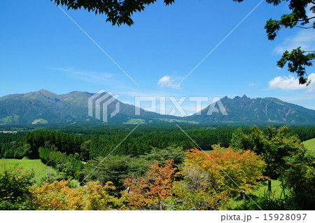 夏の阿蘇風景 月廻り公園からの阿蘇 広い風景 アウトドアイメージ 夏休みイメージ