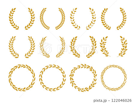 月桂樹のオーナメント(ゴールド)ローレルリース イラストセット|飾り囲み・LAUREL Wreath