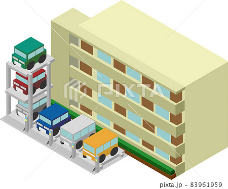アイソメトリックなEV充電スポットのある駐車場付きマンション