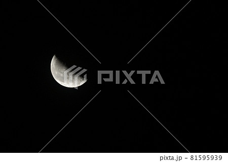 月齢21.8、半月、弓張月、下弦の月、輝く月イメージ素材
