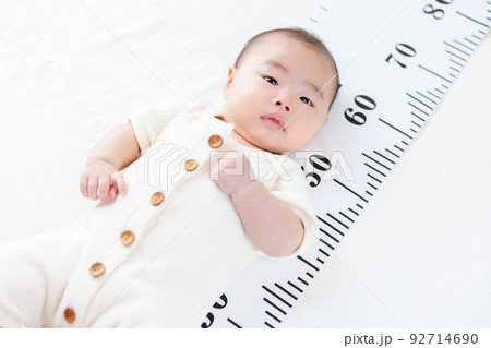 生後3ヶ月の赤ちゃん 乳児 身長を測る 身長計 成長 コピースペース
