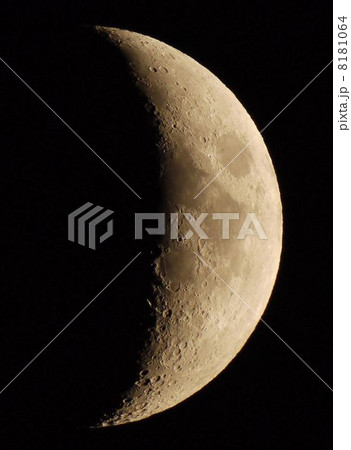 北杜市白州町、月齢5.4満ちて行く月(位置:左上)