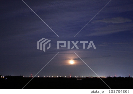 利根川に架かる夕刻の新上武大橋を舞台に2023年の6月の満月ストロベリームーンが顔を出す。