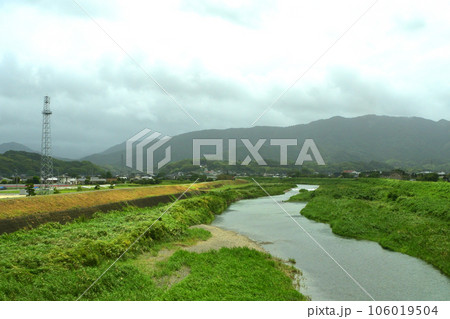曇り空のJR九州鹿児島本線の八代駅から熊本駅までの風景(2022年)