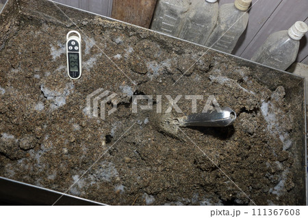 真冬の骨粉、種粕使ったぼかし肥作り 十日目