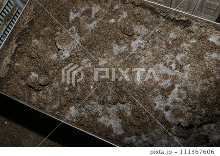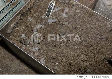 骨粉、種粕使ったぼかし肥作り兼気性発酵 五か月ぶり開封