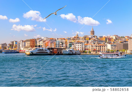 Beautiful Istanbul cityscape view from cruise sailing to Bosphorus,Turkey