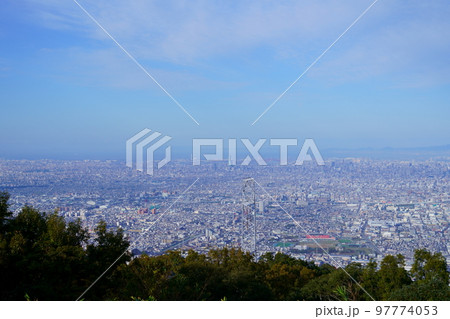 秋の朝・鐘の鳴る展望台から望む大阪大パノラマ