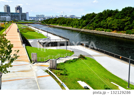 有明親水海浜公園(有明北橋付近)より木遣り橋方面を望む(東京都江東区)【2025.9】