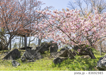 北海道伊達市、樹齢 200 年余りといわれる有珠善光寺自然公園の石割桜【5月】
