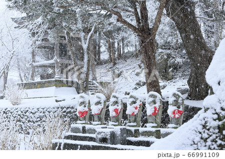北海道伊達市に在る有珠善光寺で撮影した降雪の中の地蔵菩薩