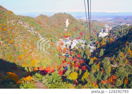 六甲有馬ロープウェーから望む六甲山、有馬温泉の紅葉/瀬戸内海国立公園