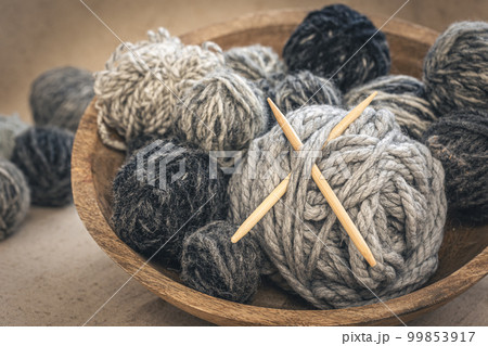 Close-up, yarn with gray threads for knitting.