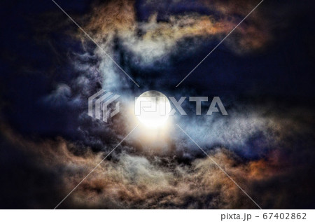 雲がかかる満月の夜空