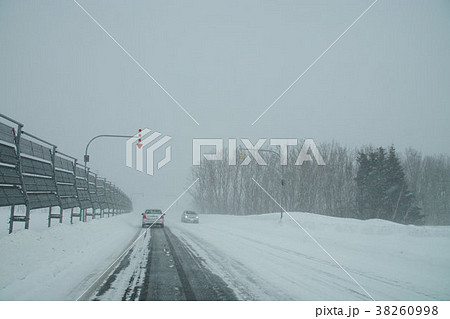 吹雪の国道231号オロロンライン(石狩市)