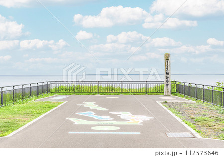北海道根室市 本土最東端 夏の納沙布岬 納沙布岬の碑と霞がかかった周辺の景色