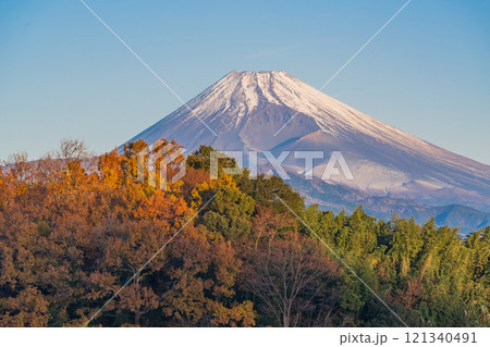 (静岡県)紅葉の始まった水ヶ塚公園から望む、富士山