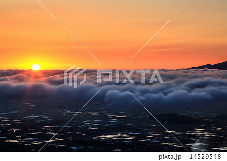 夜明けの景色(中央に朝日)神奈川県箱根町