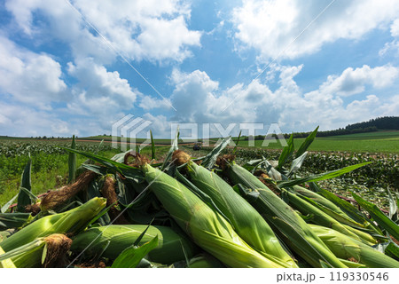 産地直送の段ボールに入っている北海道産トウモロコシ恵味
