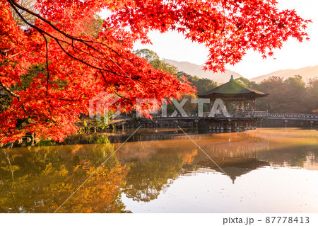 《奈良県》紅葉と浮見堂・秋の奈良公園