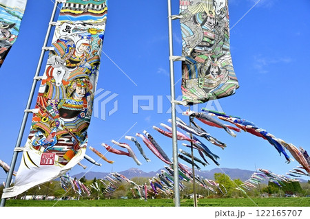 鯉のぼりと武者幟に那須連山