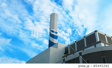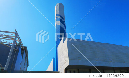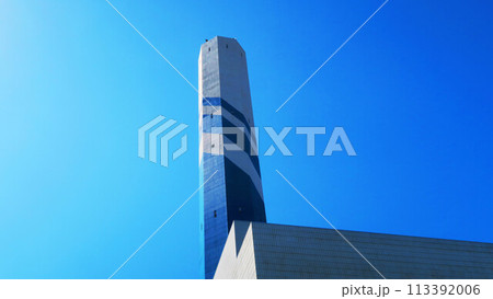 埼玉県川口市の朝日環境センターの煙突と青空の風景