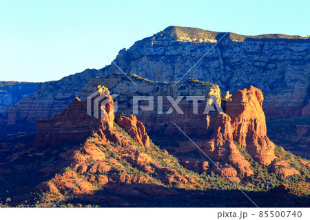 朝暘に照らされるグランドキャニオン国立公園(サウスリム)南壁 マーサーポイント アメリカ アリゾナ州