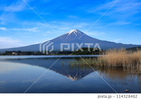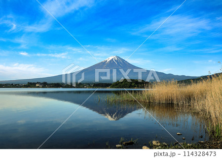 日本の風景 河口湖大石公園の逆さ富士 山梨県河口湖町