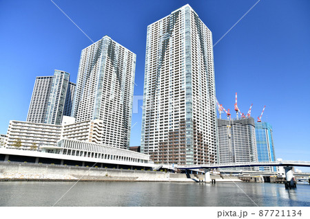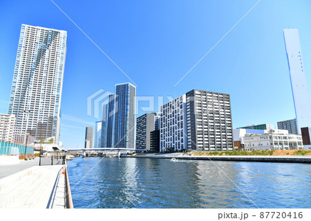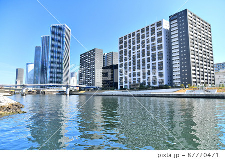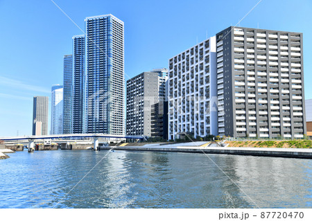 都市風景 運河沿いの高層マンション群 東京晴海