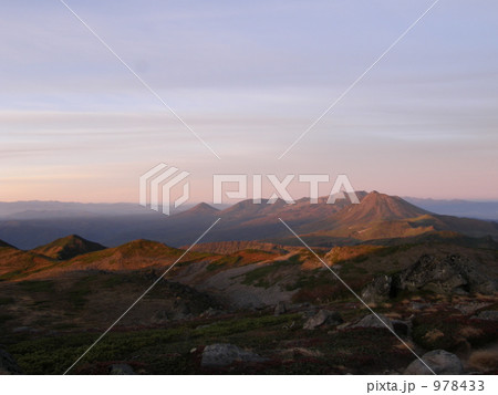 朝焼けの十勝岳連峰