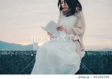朝焼けが綺麗な女性の写真