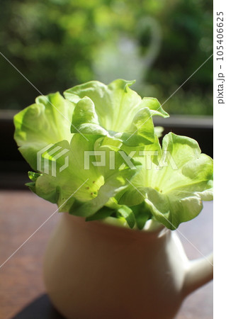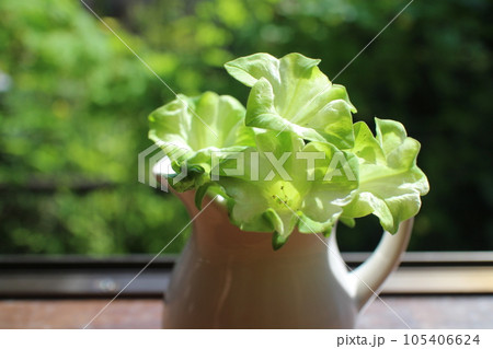 窓辺にペチュニア純翠を生ける