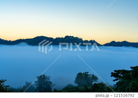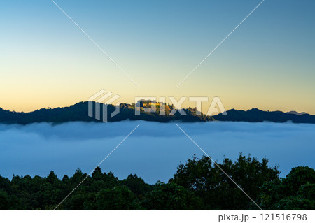【日本100名城】秋の朝の津和野城 台所櫓跡と雲海 島根県鹿足郡津和野町