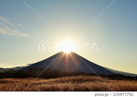 富士山と猫じゃらし(チカラシバ) 秋のダイヤモンド富士 朝霧高原