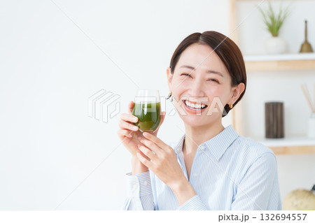 青汁を飲む女性
