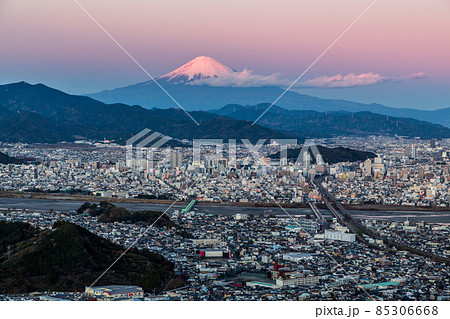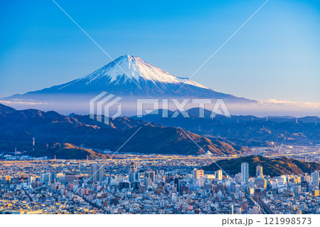(静岡県)静岡市の街並みと富士山 日の出