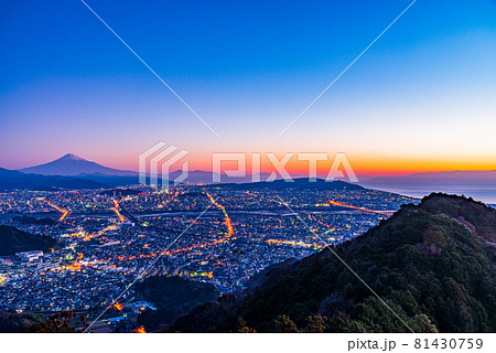 (静岡県)静岡市の街灯りと富士山 夜明け前