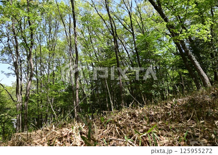 森の中の小道、木漏れ日の散歩道