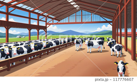 「酪農場の一角 −牧歌を奏でる牛たち」