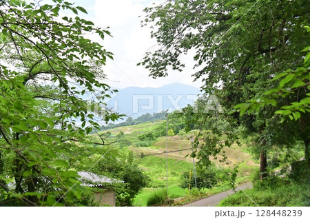 姨捨公園近くの月見畑の木々の間からの眺め
