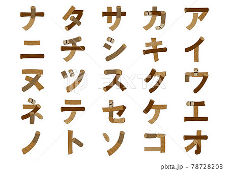 木で作ったカタカナのア行〜ナ行