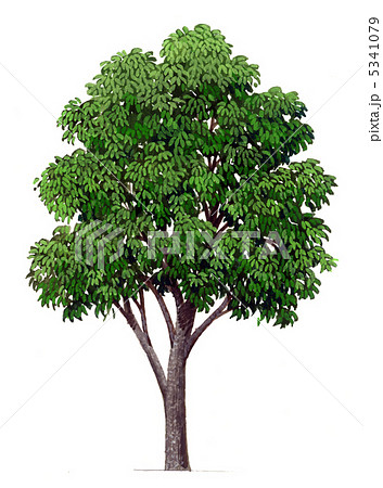 樹木の風景イラスト、クスノキ 楠の手書き精密画